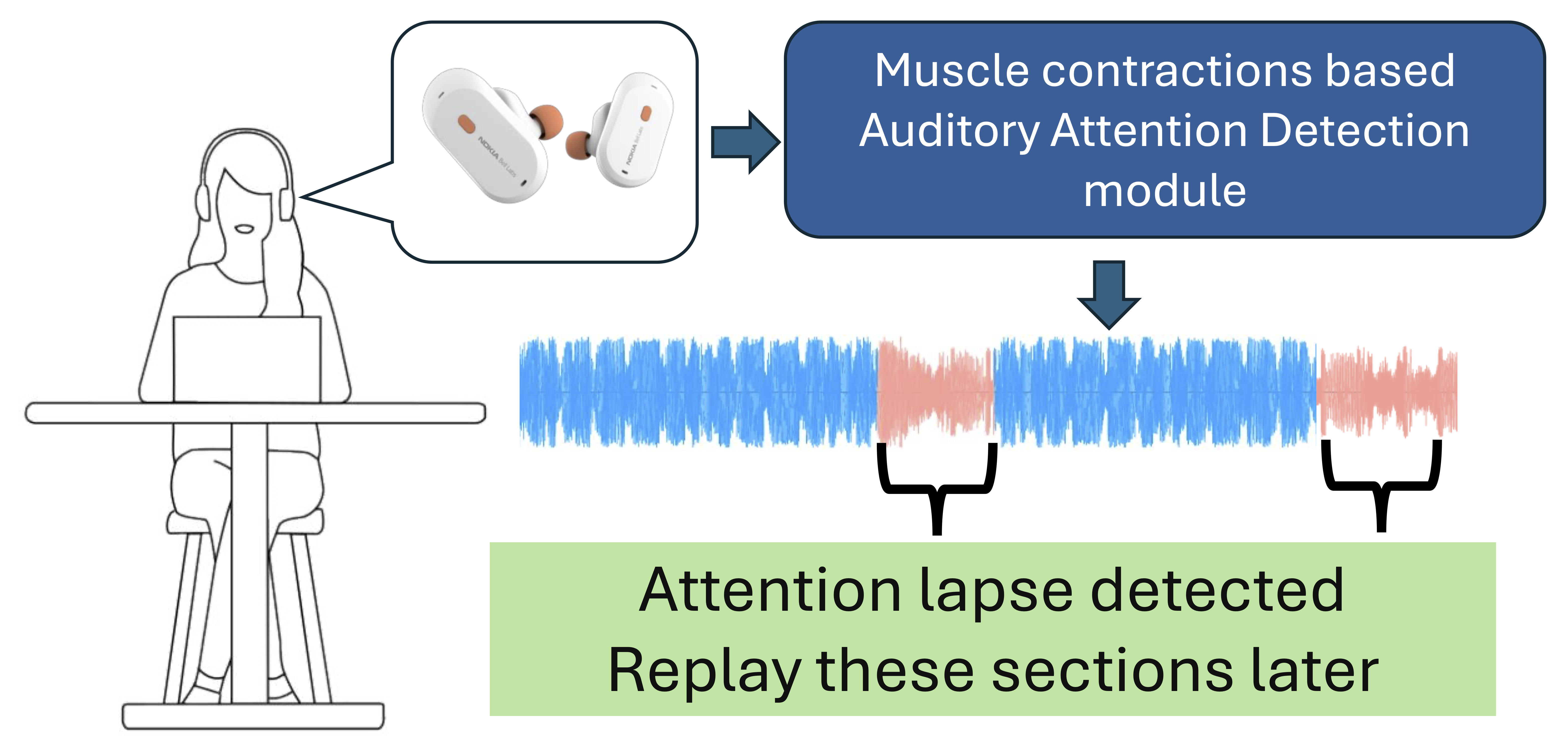 Harshvardhan Takawale, Yang Liu, Khaldoon Al-Naimi, Fahim Kawsar, and Alessandro Montanari, “Towards Detecting Auditory Attention from in-Ear Muscle Contractions using Commodity Earbuds,” Proceedings of ICASSP 2025 - IEEE International Conference on Acoustics, Speech and Signal Processing, pp. 1-5, IEEE, 2025. [paper]