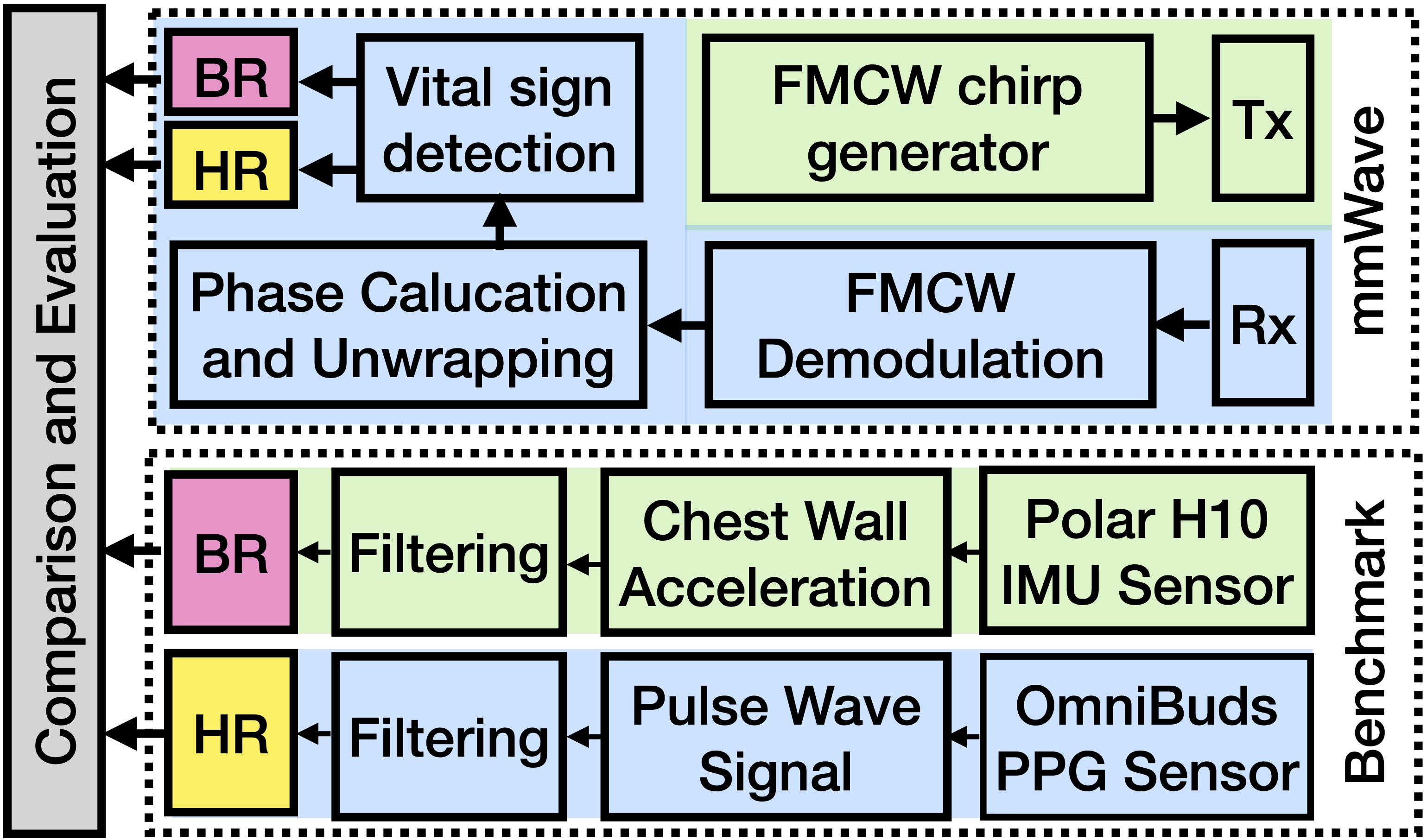 As wearable sensing evolves toward non-contact and mobility-friendly designs, mmHvital explores how head-mounted mmWave radar can monitor vital signs such as heart rate (HR) and respiration rate (RR) without chest-level placement. The motivation stems from the limitations of traditional radar setups, which require fixed, front-facing positioning and make them unsuitable for natural, mobile usage in daily scenarios.